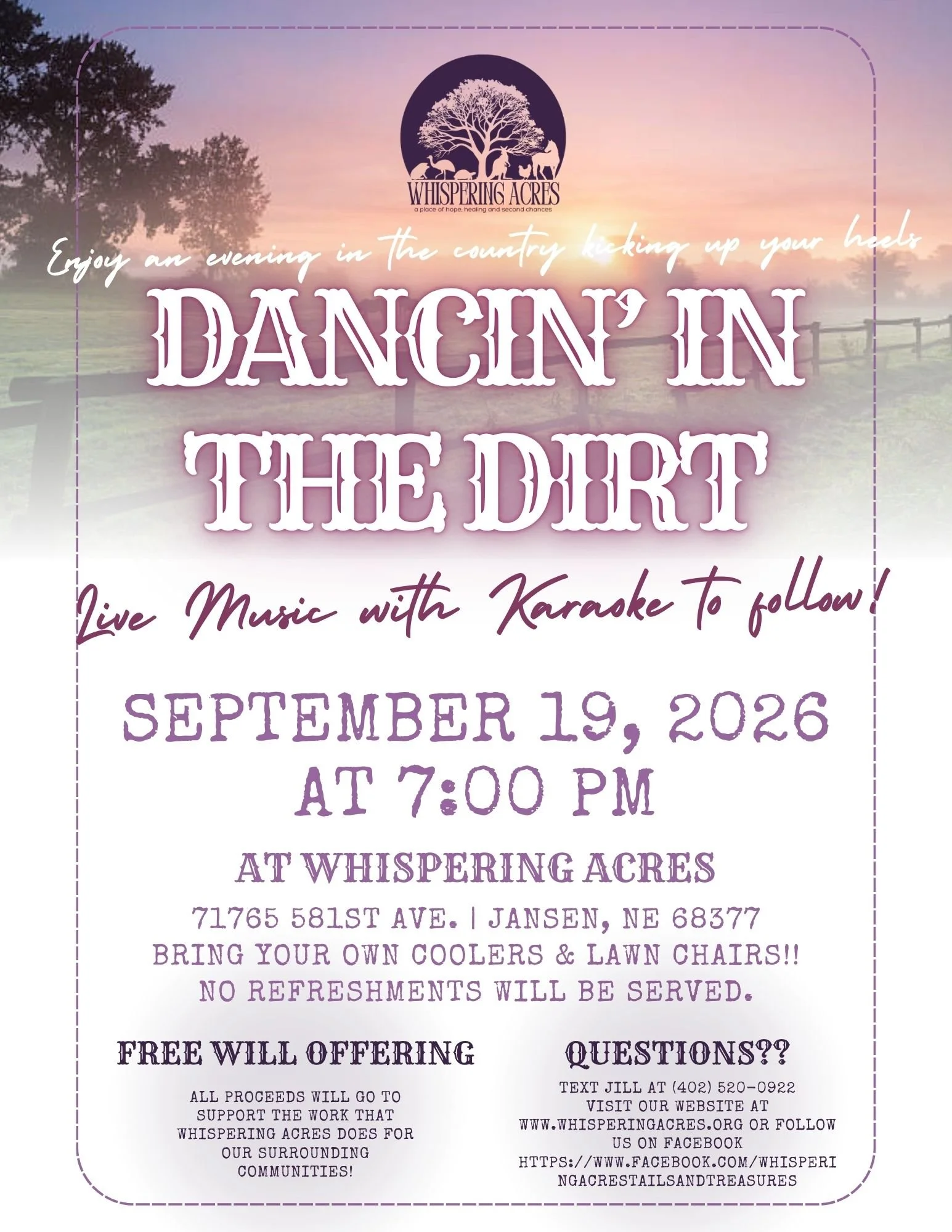 Back to All Events Dancin' In The Dirt Saturday, September 19, 2026 7:00 PM 11:59 PM Google Calendar ICS
